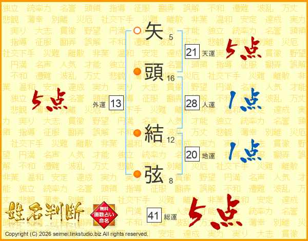 矢(5画)頭(16画) 結(12画)弦(8画)
