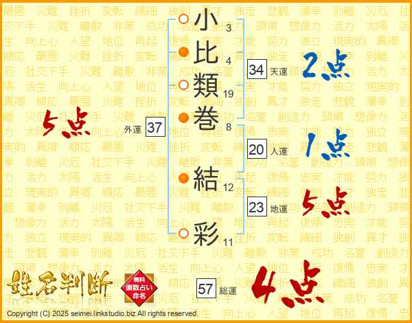 小比類巻結彩さんの外運は37画の5点!