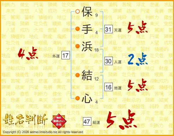 保手浜結心さんの総運は47画の5点!