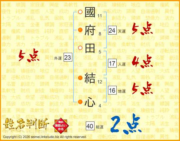 國府田結心さんの天運は24画の5点!