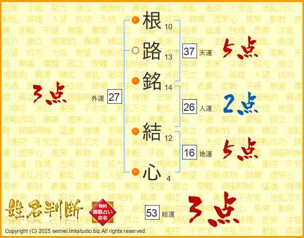根路銘結心さんの総運は53画の3点!