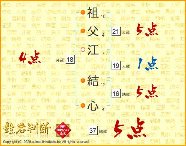 祖父江結心さんの総運は37画の5点!