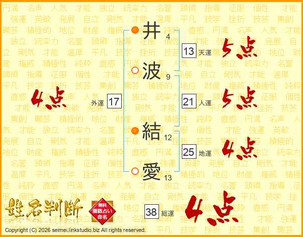 井波結愛さんの総運は38画の4点!