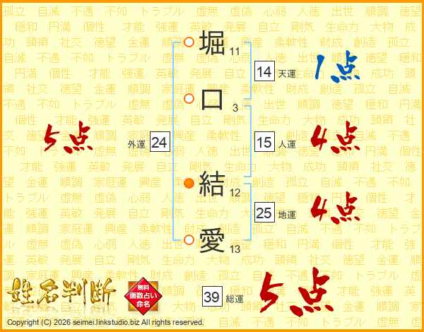 堀口結愛さんの総運は39画の5点!