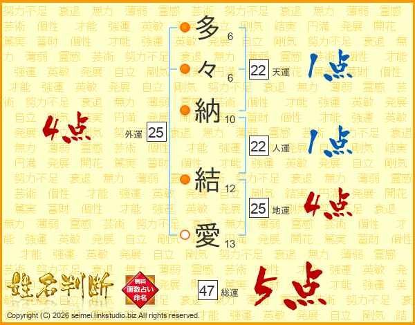 多々納結愛さんの総運は47画の5点!