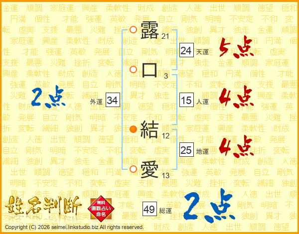 露口結愛さんの総運は49画の2点!