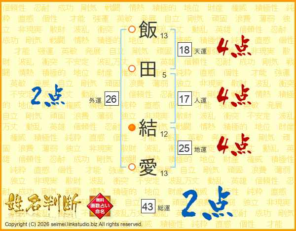 飯田結愛さんの総運は43画の2点!