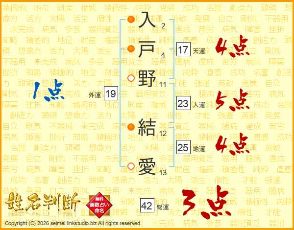 入戸野結愛さんの天運は17画の4点!