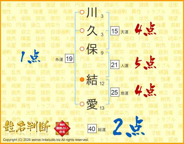川久保結愛さんの地運は25画の4点!