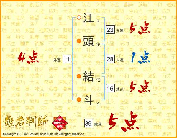 江頭結斗さんの総運は39画の5点!