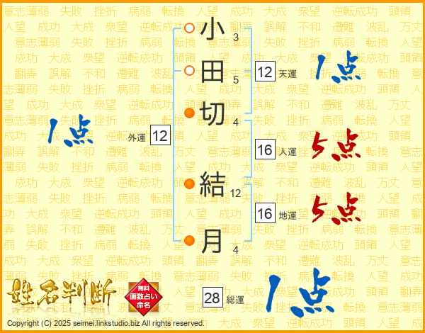 小(3画)田(5画)切(4画) 結(12画)月(4画)