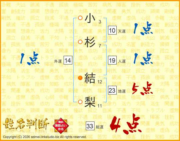 小杉結梨さんの総運は33画の4点!