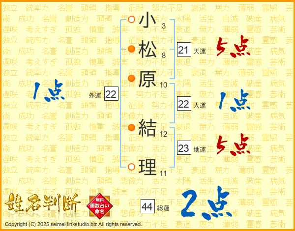 小松原結理さんの総運は44画の2点!