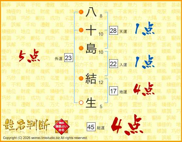 八十島結生さんの総運は45画の4点!