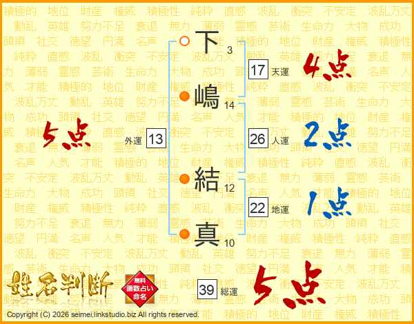 下嶋結真さんの総運は39画の5点!