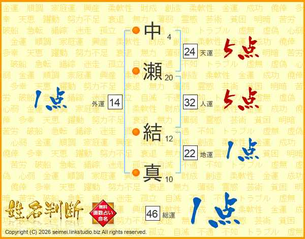 中瀬結真さんの総運は46画の1点!