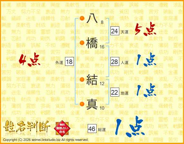 八橋結真さんの総運は46画の1点!