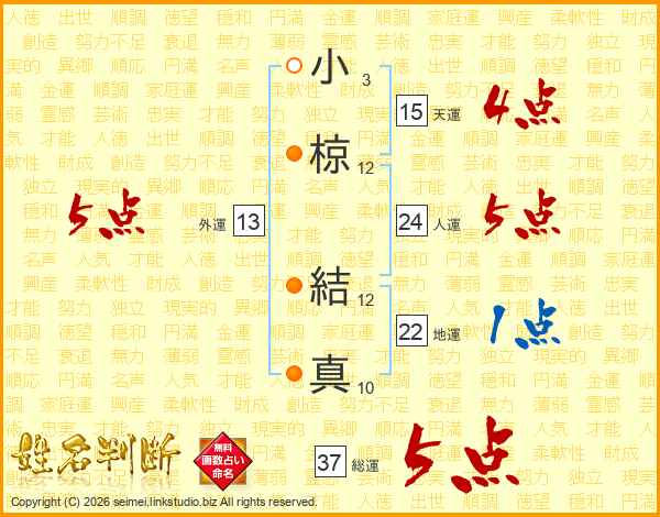 小椋結真さんの総運は37画の5点!