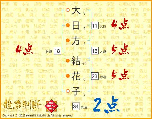 大日方結花子さんの外運は18画の4点!