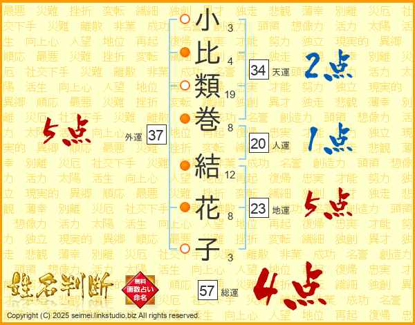 小比類巻結花子さんの外運は37画の5点!