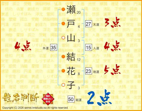 瀬戸山結花子さんの外運は35画の4点!