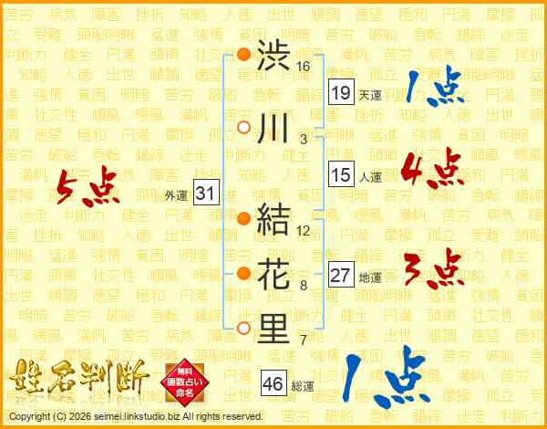 渋川結花里さんの総運は46画の1点!