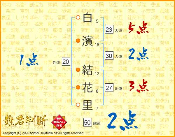 白濱結花里さんの総運は50画の2点!