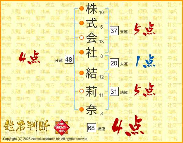株式会社結莉奈さんの総運は68画の4点!