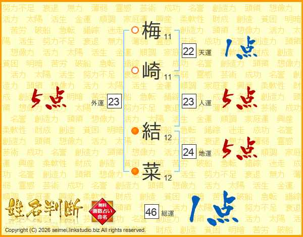 梅崎結菜さんの総運は46画の1点!