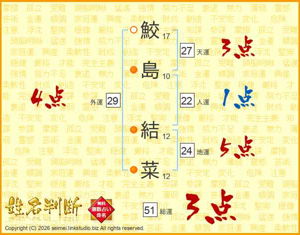 鮫島結菜さんの総運は51画の3点!