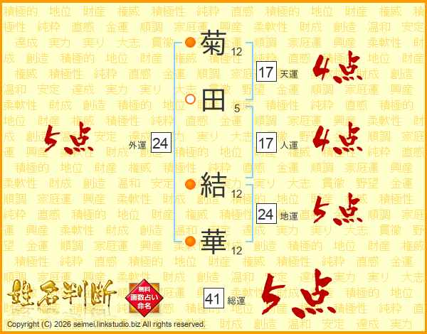 菊田結華さんの総運は41画の5点!
