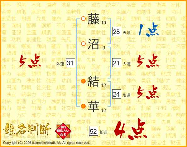 藤沼結華さんの外運は31画の5点!