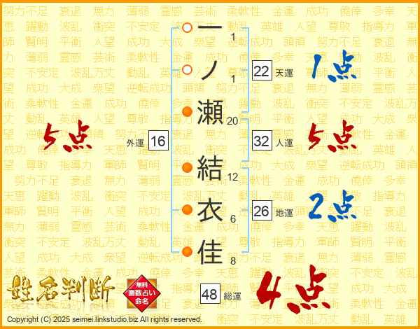 一ノ瀬結衣佳さんの総運は48画の4点!