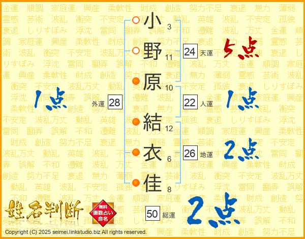 小野原結衣佳さんの天運は24画の5点!