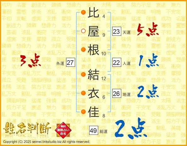 比屋根結衣佳さんの総運は49画の2点!