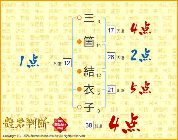 三箇結衣子さんの総運は38画の4点!