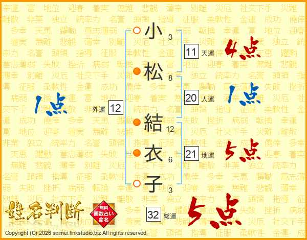 小松結衣子さんの総運は32画の5点!