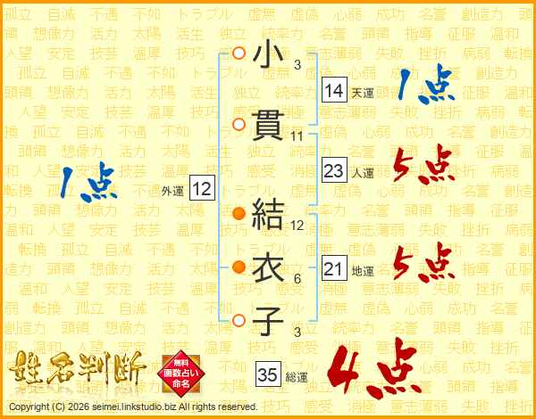 小貫結衣子さんの総運は35画の4点!