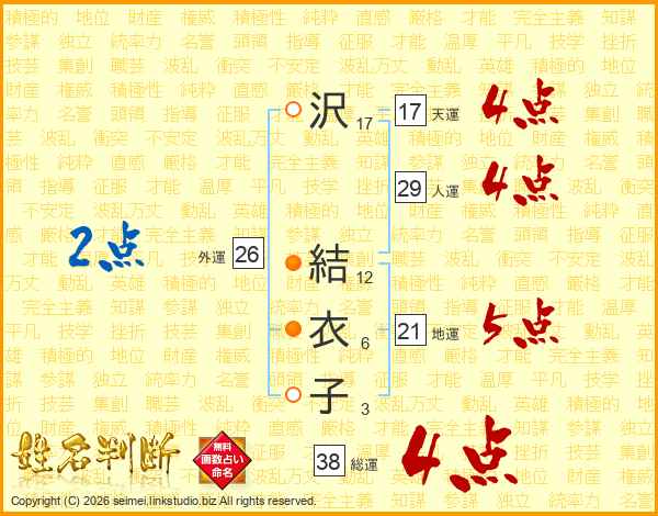 沢結衣子さんの総運は38画の4点!