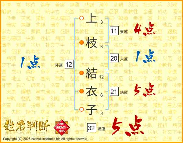 上枝結衣子さんの総運は32画の5点!
