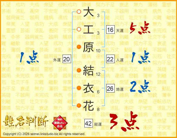 大工原結衣花さんの天運は16画の5点!