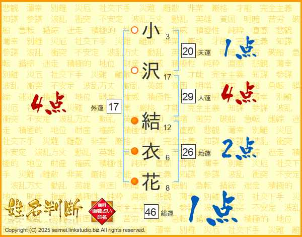 小沢結衣花さんの外運は17画の4点!