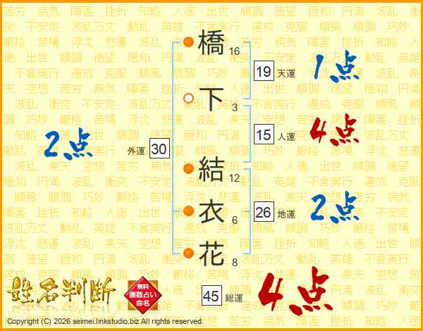 橋下結衣花さんの総運は45画の4点!