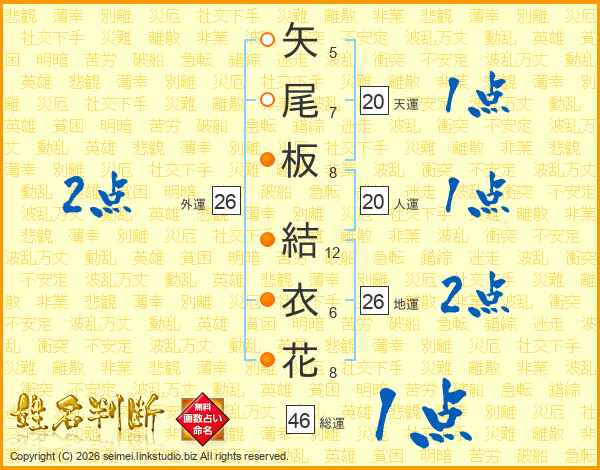 矢尾板結衣花さんの総運は46画の1点!
