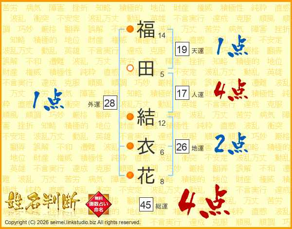 福田結衣花さんの総運は45画の4点!