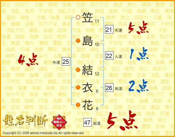 笠島結衣花さんの総運は47画の5点!