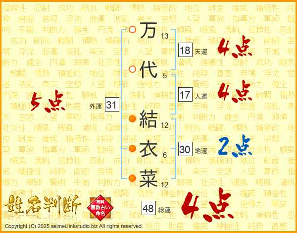 万代結衣菜さんの天運は18画の4点!