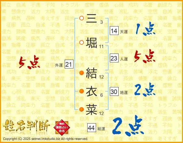 三堀結衣菜さんの総運は44画の2点!