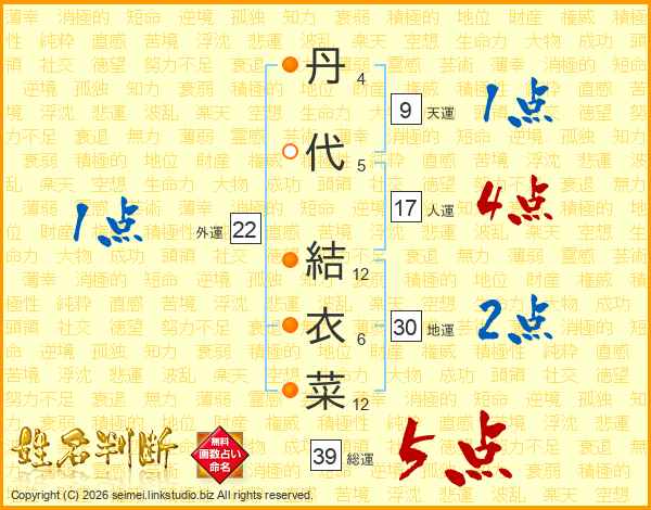 丹代結衣菜さんの総運は39画の5点!