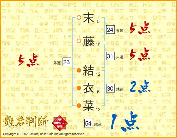 末藤結衣菜さんの天運は24画の5点!
